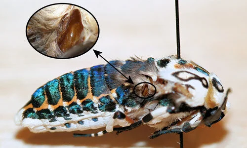 Fig 3. A milkweed tussock moth caterpillar found near a focal tree site.